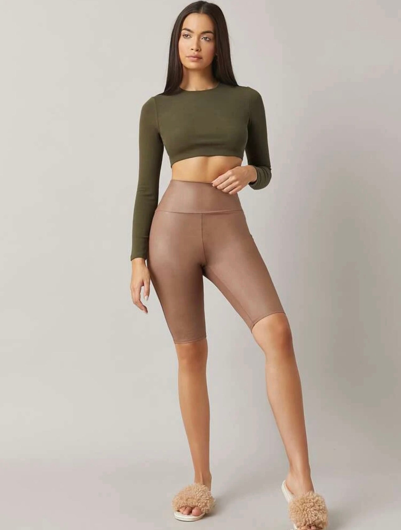 Get this slim fitted crop top in one of two versions: with a positive message or with a Army Green background. Different look, same upbeat vibes. Featuring a crew neck full sleeves and a slim cut in stretch cotton jersey.